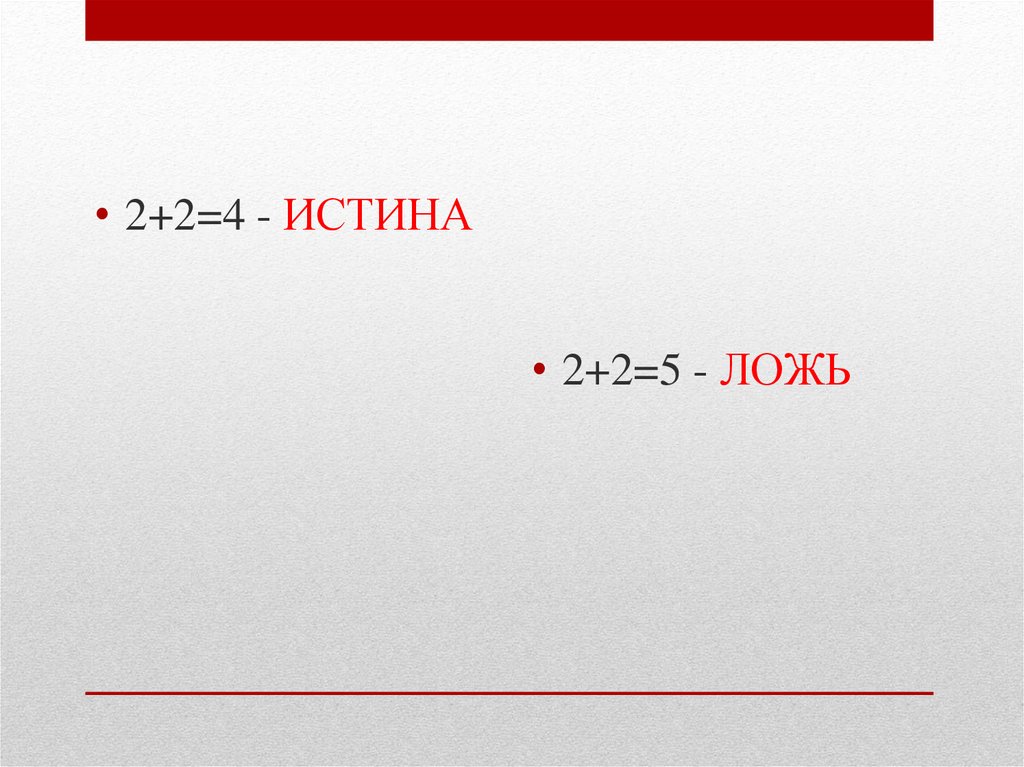 • 2+2=4 - ИСТИНА• 2+2=5 - ЛОЖЬ