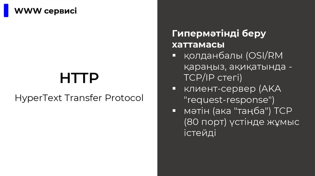 Protocol) протоколы арқылы гипермәтіндік құжаттарға қол жеткізуді қамтамасыз ететін