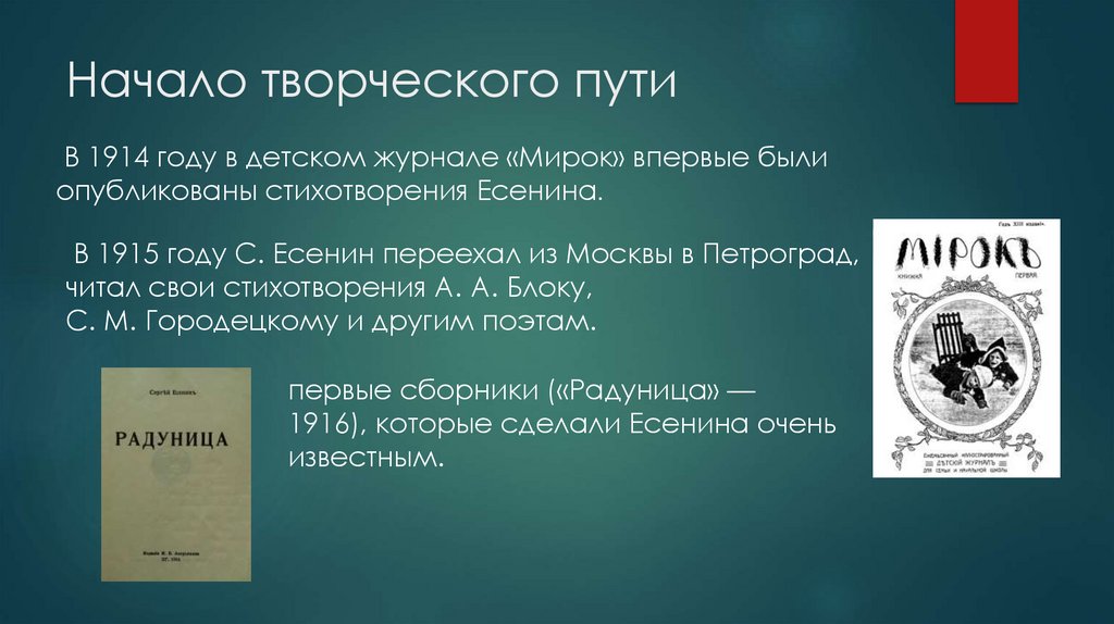 Начало творческого путиВ 1914 году в детском журнале «Мирок» впервые были