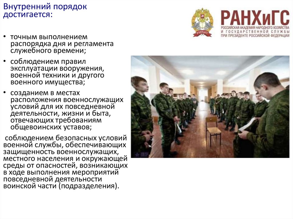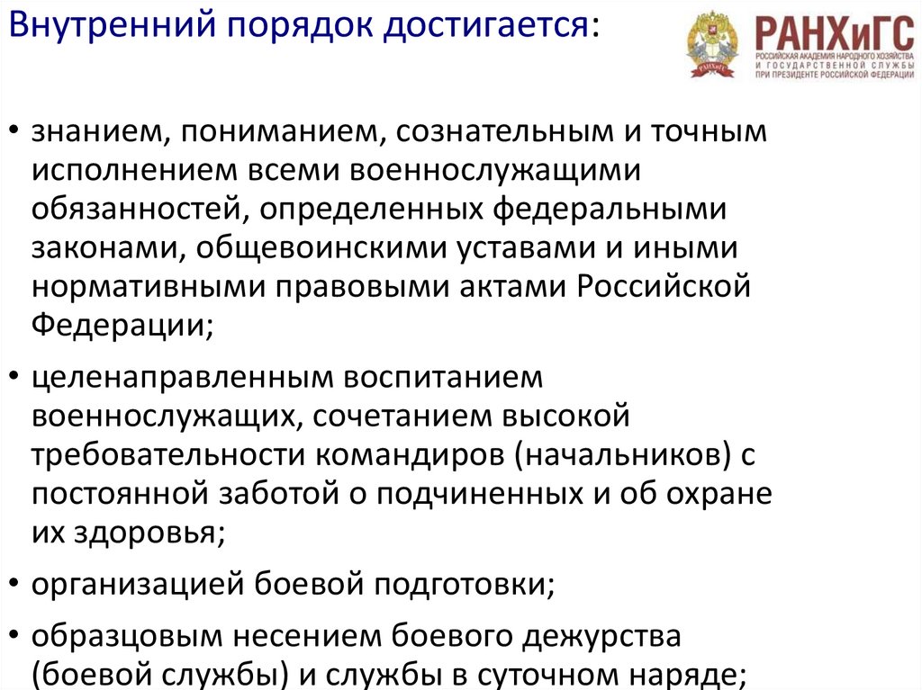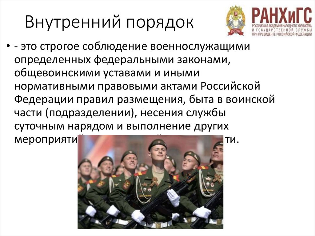 Внутренний порядок• - это строгое соблюдение военнослужащими