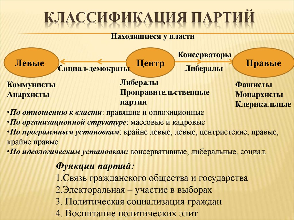 КЛАССИФИКАЦИЯ ПАРТИЙНаходящиеся у власти