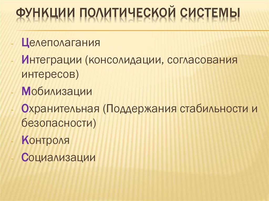 ФУНКЦИИ ПОЛИТИЧЕСКОЙ СИСТЕМЫЦелеполагания