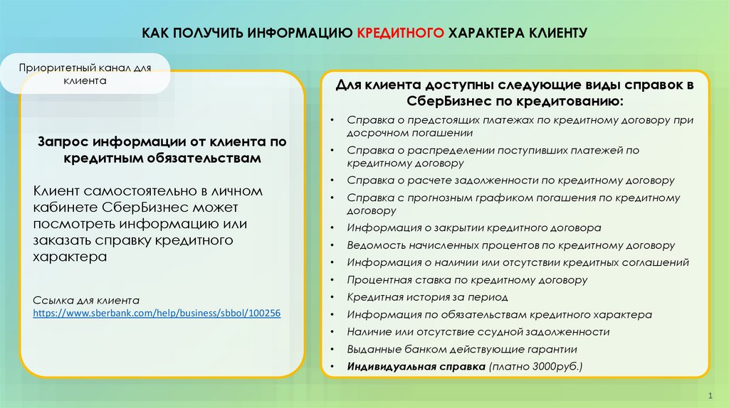 Как получить информацию кредитного характера клиенту?