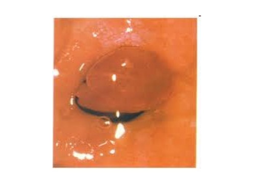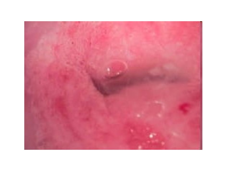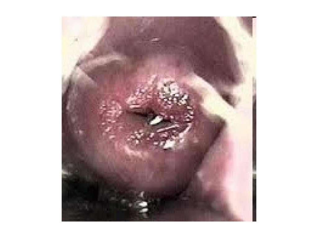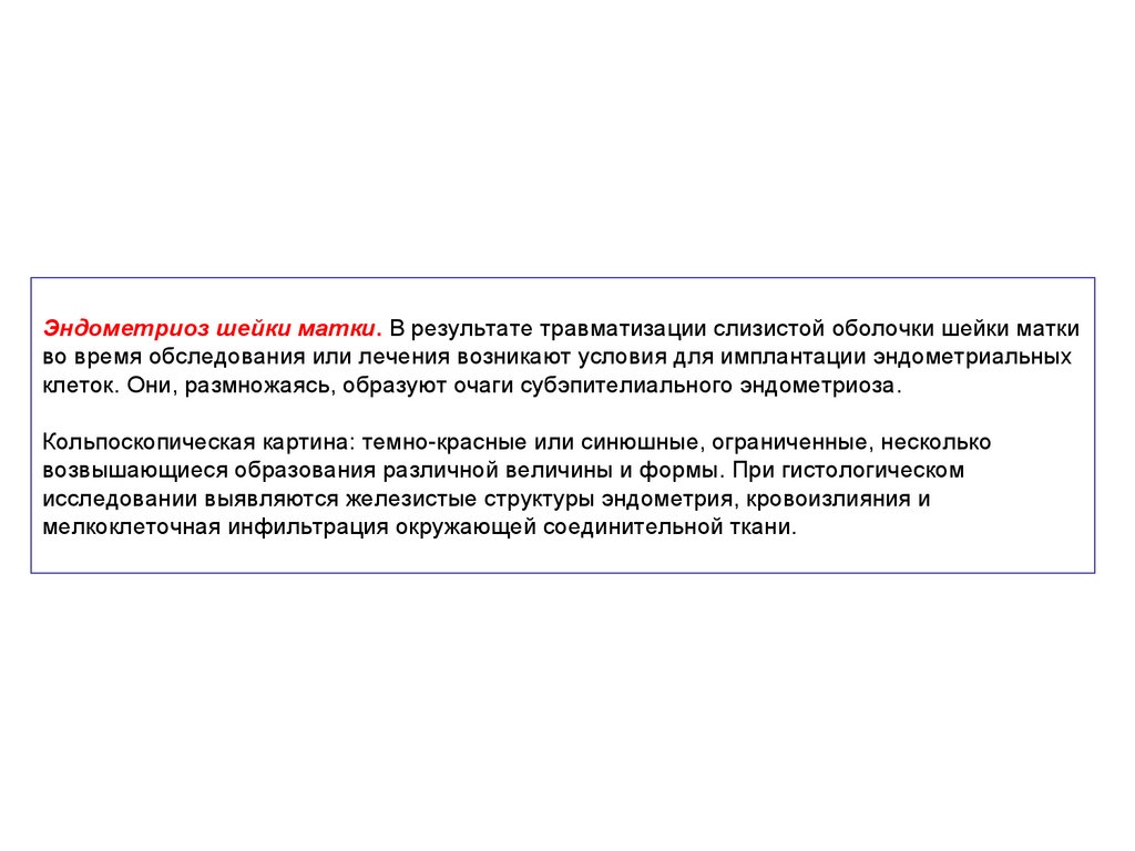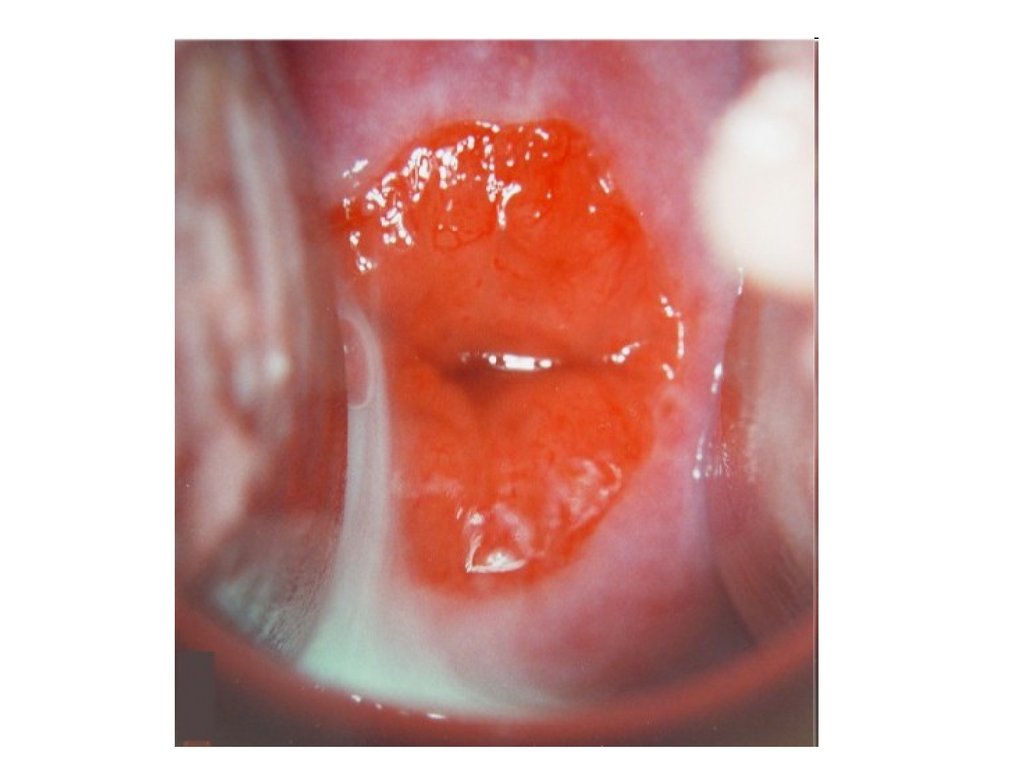 фоне неизмененной слизистой оболочки при нерезко выраженной гипертрофии шейки.