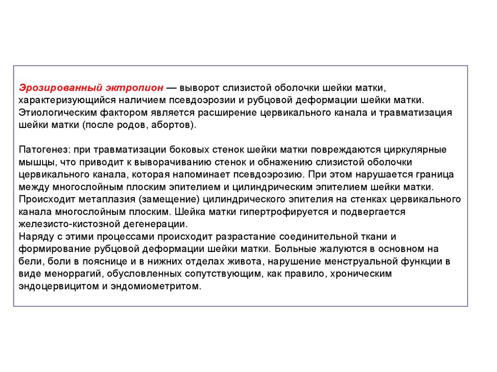 цервикального канала, которая напоминает псевдоэрозию. При этом нарушается граница