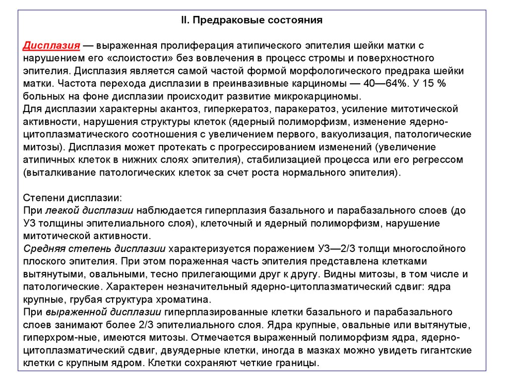 II. Предраковые состоянияДисплазия — выраженная пролиферация атипического эпителия шейки матки с