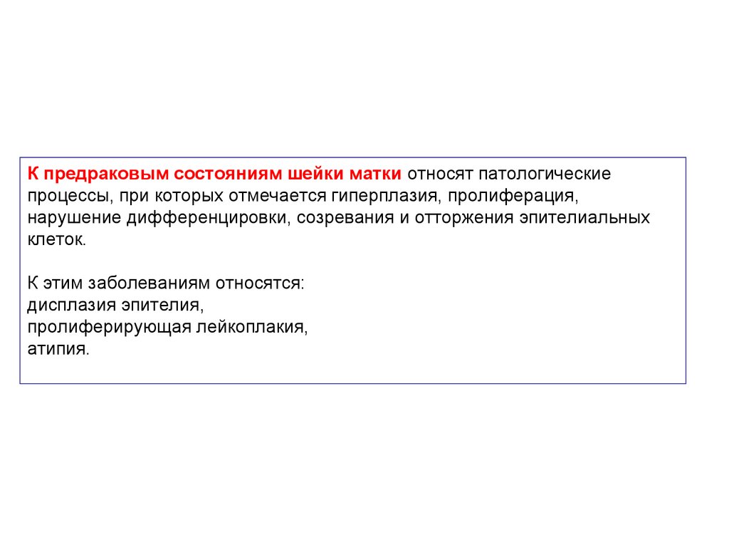 К предраковым состояниям шейки матки относят патологическиепроцессы, при которых отмечается гиперплазия, пролиферация,