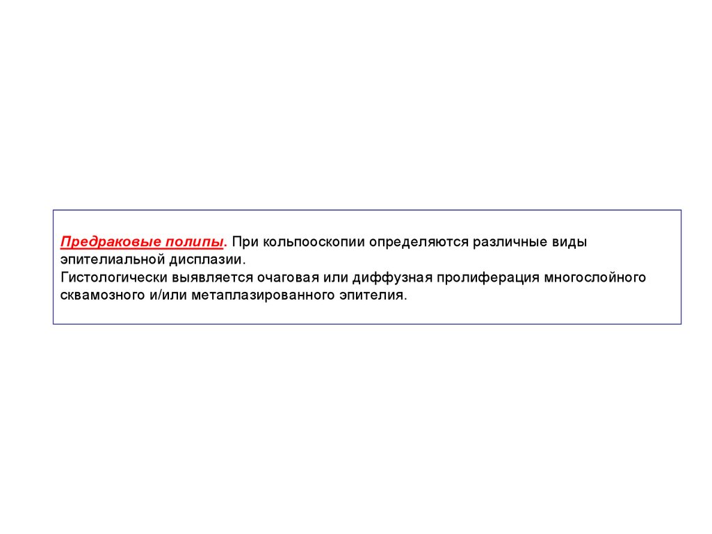 Предраковые полипы. При кольпооскопии определяются различные видыэпителиальной дисплазии.