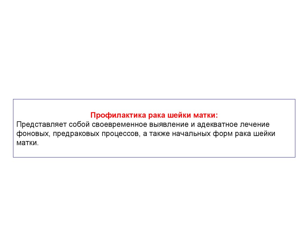 Профилактика рака шейки матки:Представляет собой своевременное выявление и адекватное лечение