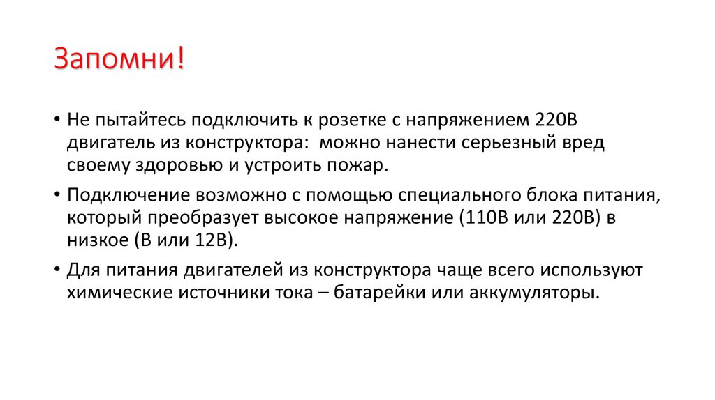 Запомни!• Не пытайтесь подключить к розетке с напряжением 220В