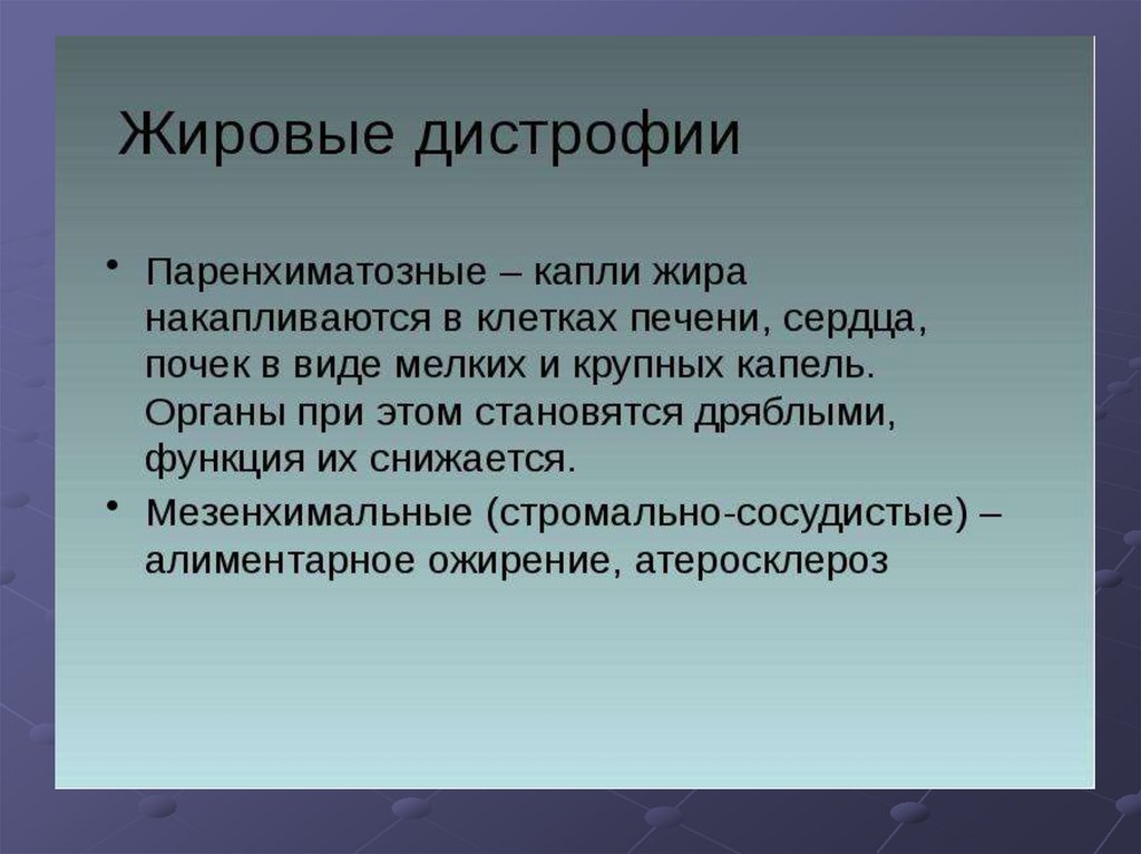 26. Паренхиматозные жировые дистрофии