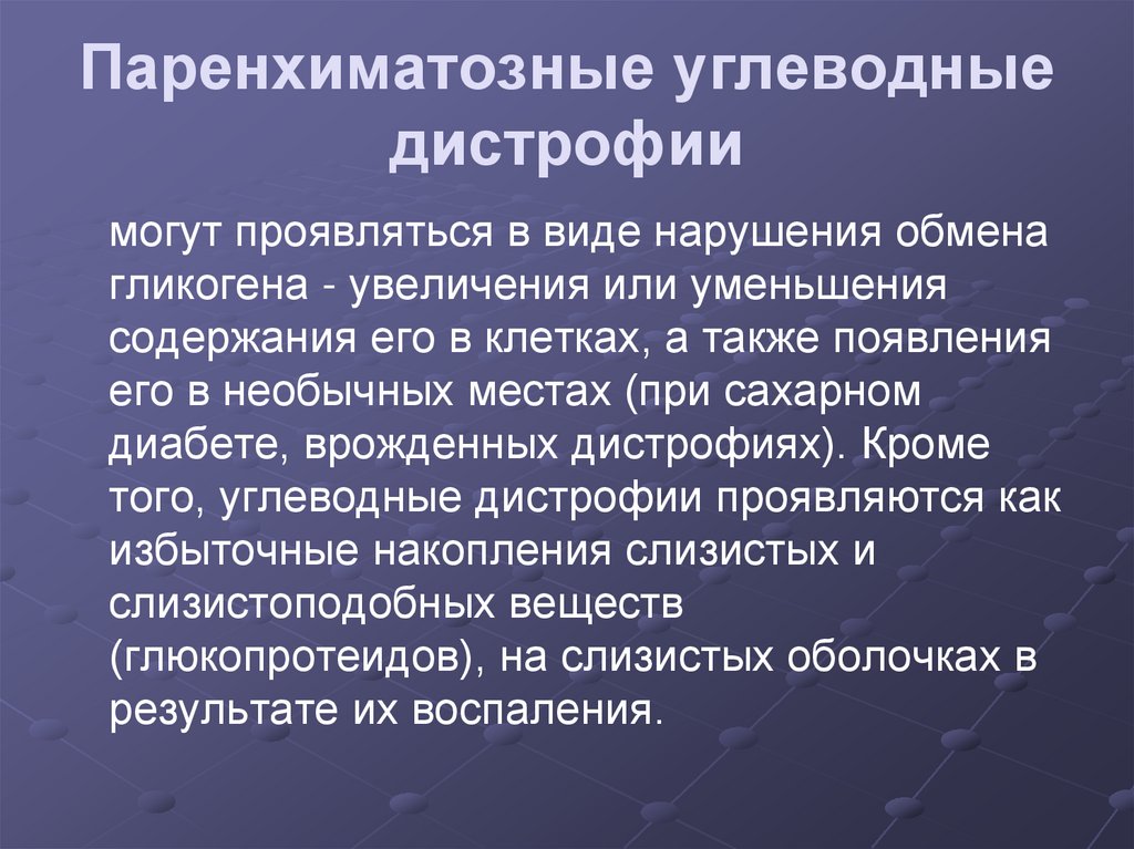 того, углеводные дистрофии проявляются как