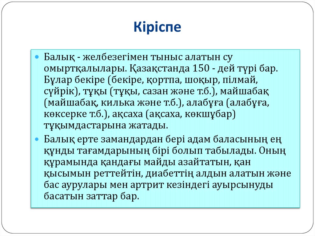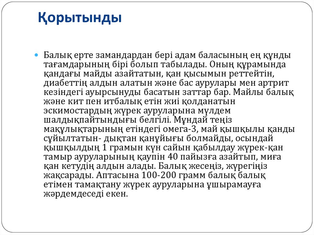 ҚорытындыБалық ерте замандардан бері адам баласының ең құнды