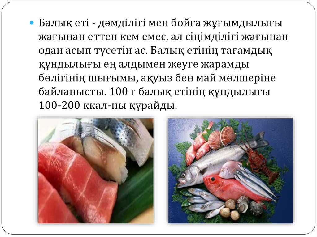 байланысты. 100 г балық етінің құндылығы