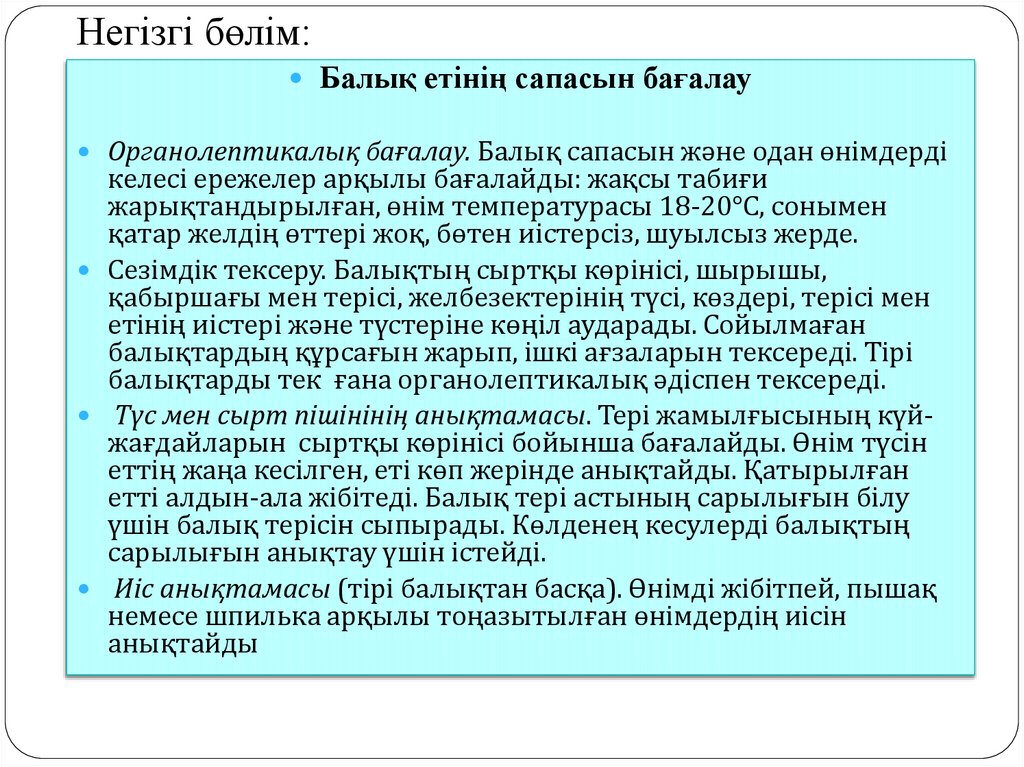 Негізгі бөлім:Балық етінің сапасын бағалау