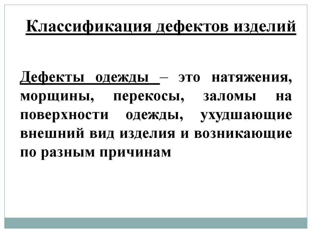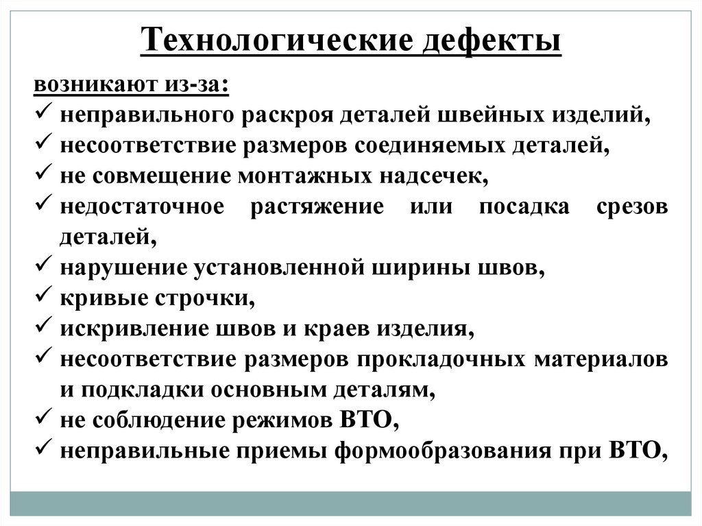 ДЕФЕКТЫ ОДЕЖДЫТехнологические