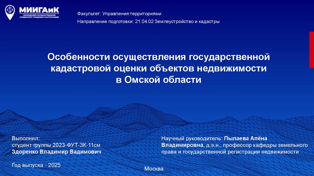 Факультет: Управления территориямиНаправление подготовки: 21.04.02 Землеустройство и кадастры