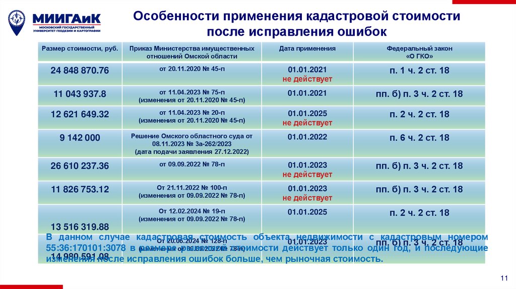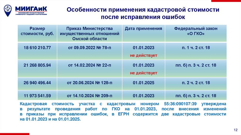 в приказы при исправлении ошибок, в ЕГРН содержится две кадастровые стоимости