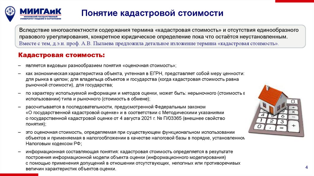 Вместе с тем, д.э.н. проф. А.В. Пылаева предложила детальное изложение термина «кадастровая стоимость».