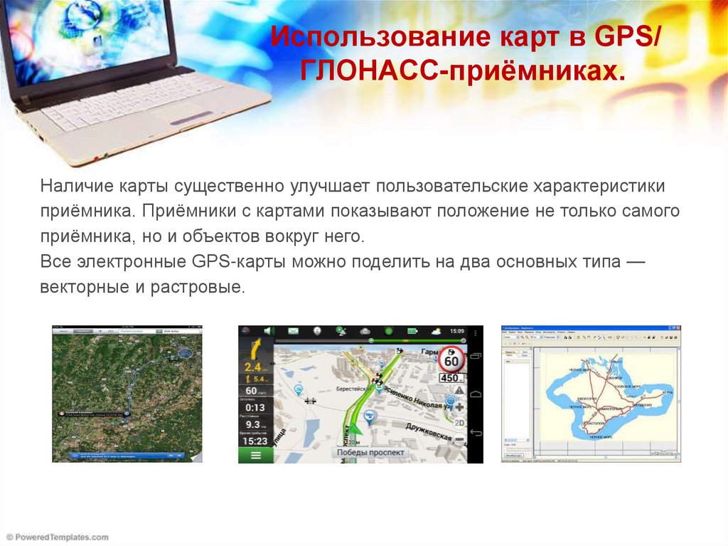 Наличие карты существенно улучшает пользовательские характеристикиприёмника. Приёмники с картами показывают положение не только самого