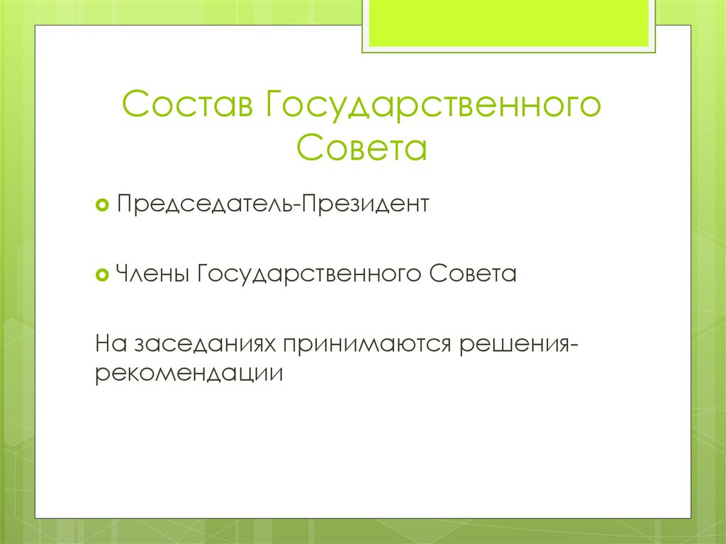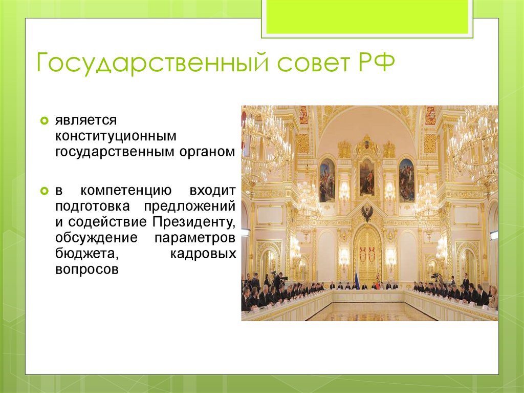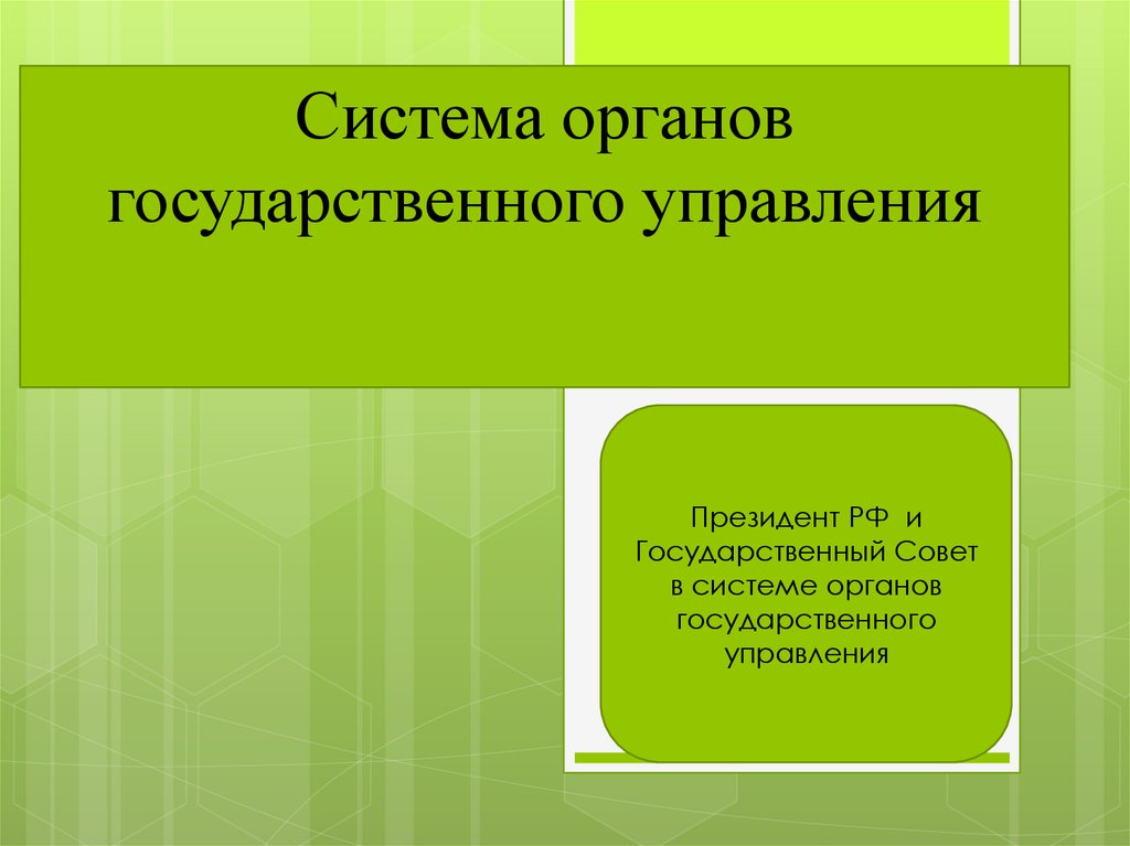 Система органов государственного управления Президент РФ и Государственный Совет в системе органов государственного управления