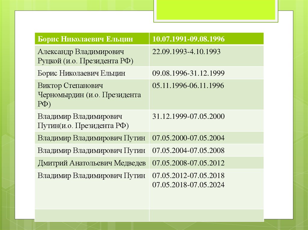 Борис Николаевич Ельцин10.07.1991-09.08.1996
