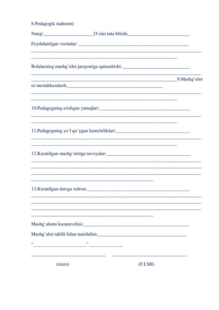 12.Kuzatilgan mashg`ulotga tavsiyalar:___________________________________