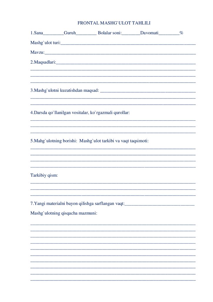 FRONTAL MASHG`ULOT TAHLILI1.Sana_________Guruh_________ Bolalar soni:________Davomati_________%