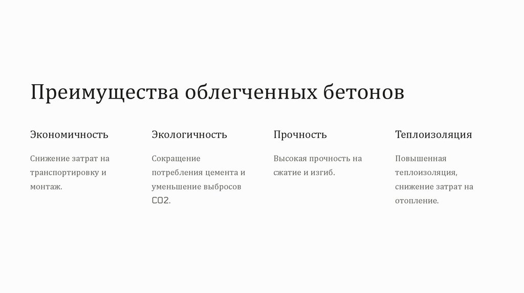 Преимущества облегченных бетоновЭкономичность
