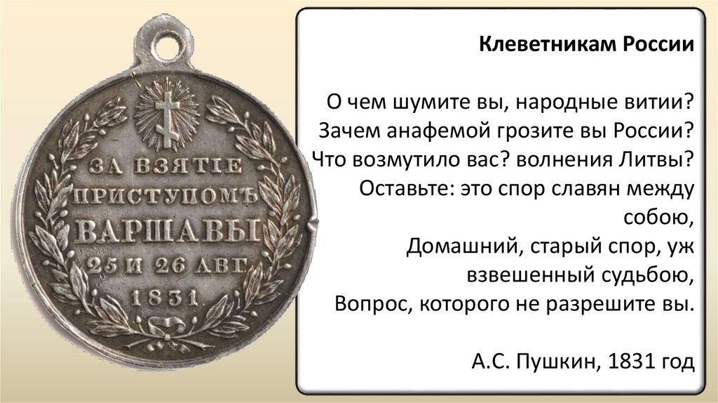 Клеветникам РоссииО чем шумите вы, народные витии?