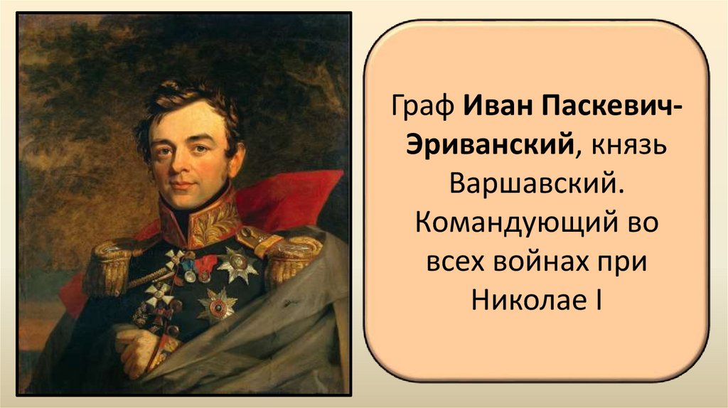 Граф Иван ПаскевичЭриванский, князьВаршавский.