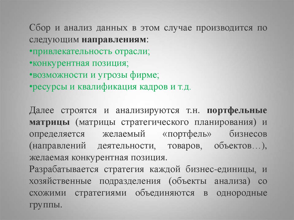 Разрабатывается стратегия каждой бизнес-единицы, и