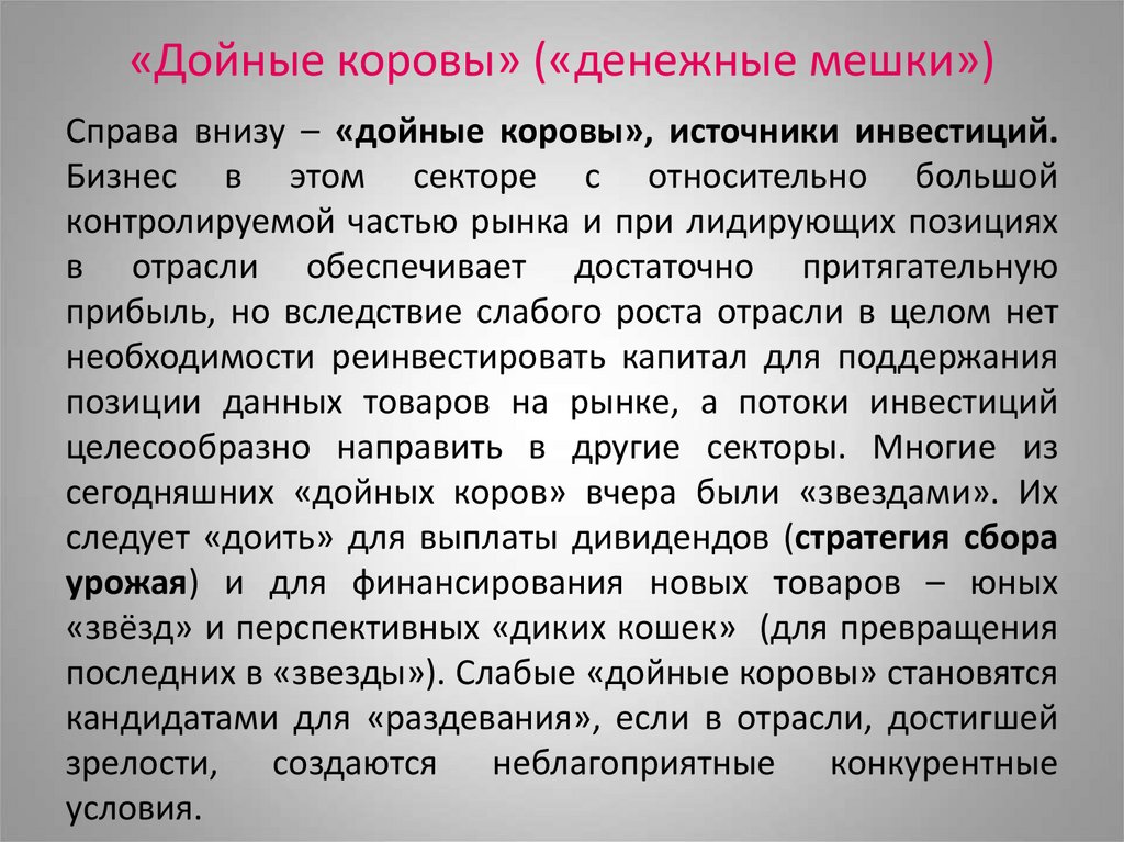 «дойных коров»? Или если «коровы» - пузыри небольших