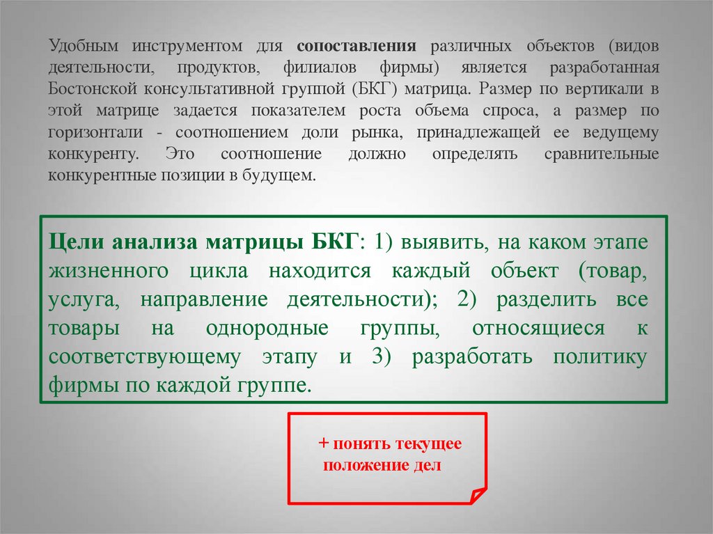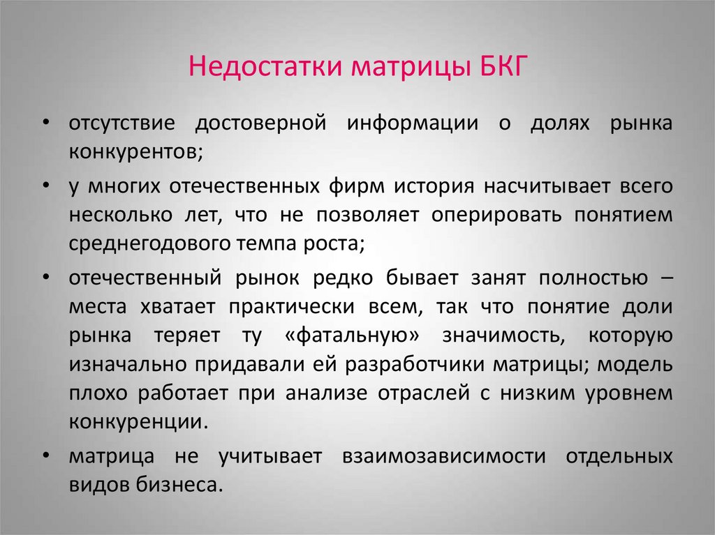 4) Каковы достоинства / недостатки методики «матрица БКГ»?