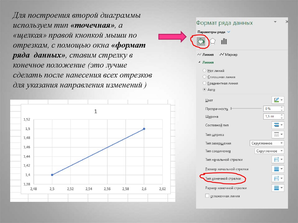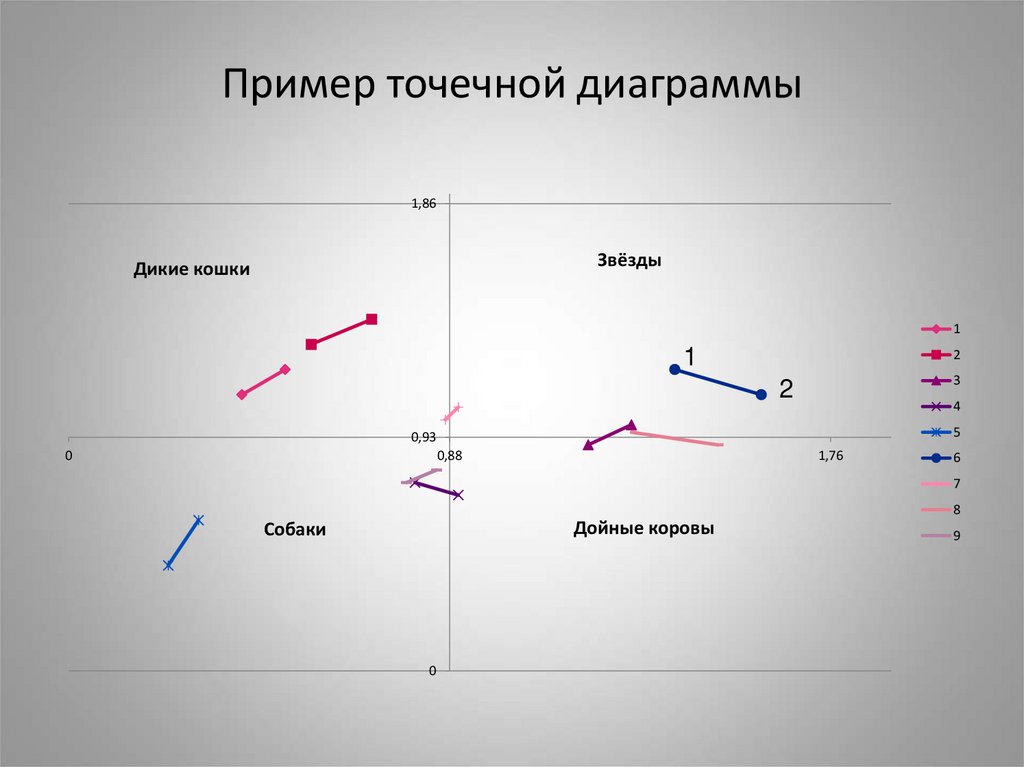 Для построения второй диаграммыиспользуем тип «точечная», а