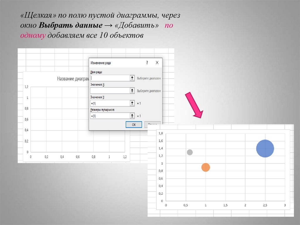 «Щелкая» по полю пустой диаграммы, черезокно Выбрать данные → «Добавить» по