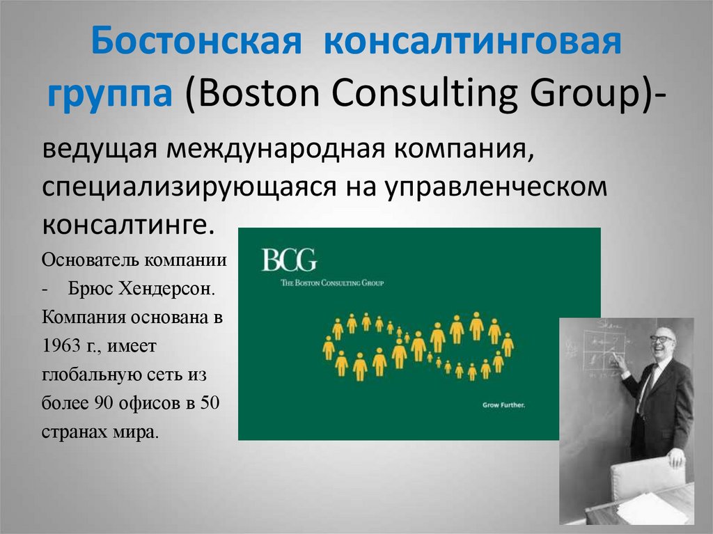 Бостонская консалтинговаягруппа (Boston Consulting Group)ведущая международная компания,