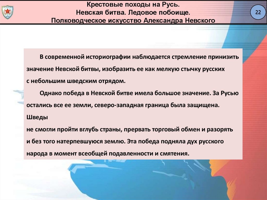 значение Невской битвы, изобразить ее как мелкую стычку русских