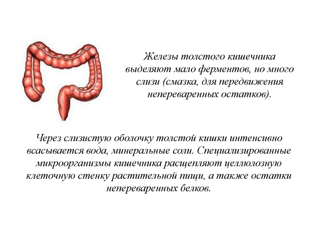 Железы толстого кишечникавыделяют мало ферментов, но много