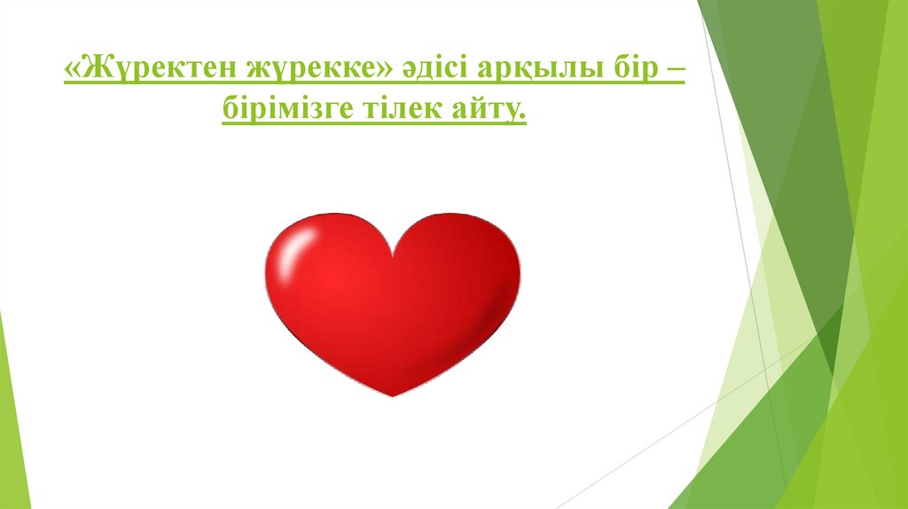 «Жүректен жүрекке» әдісі арқылы бір –бірімізге тілек айту.