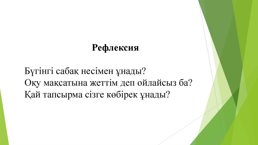 РефлексияБүгінгі сабақ несімен ұнады?
