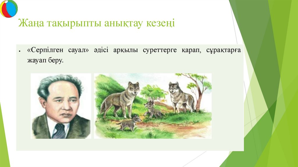 Жаңа тақырыпты анықтау кезеңі«Серпілген сауал» әдісі арқылы суреттерге қарап, сұрақтарға