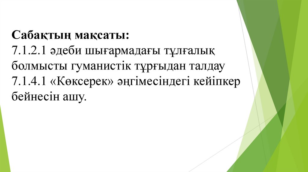 Сабақтың мақсаты:7.1.2.1 әдеби шығармадағы тұлғалық