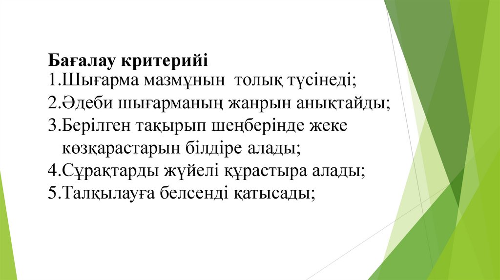 Бағалау критерийі1.Шығарма мазмұнын толық түсінеді;