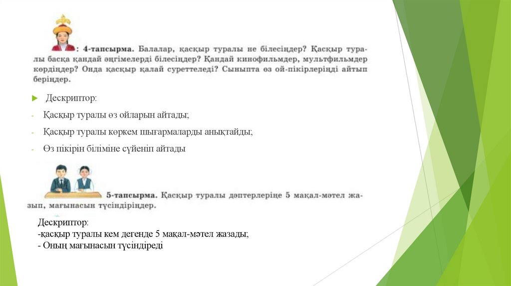 Дескрипторлары:1.Берілген тақырып шеңберінде