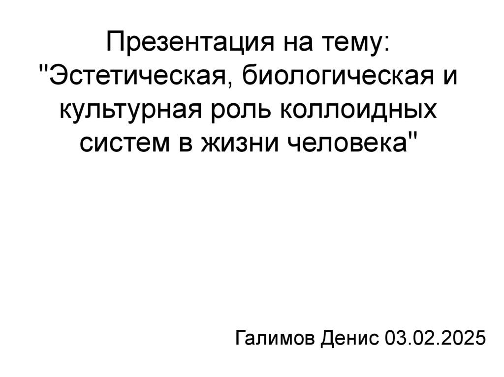 Эстетическая, биологическая и культурная роль коллоидных систем в жизни человека