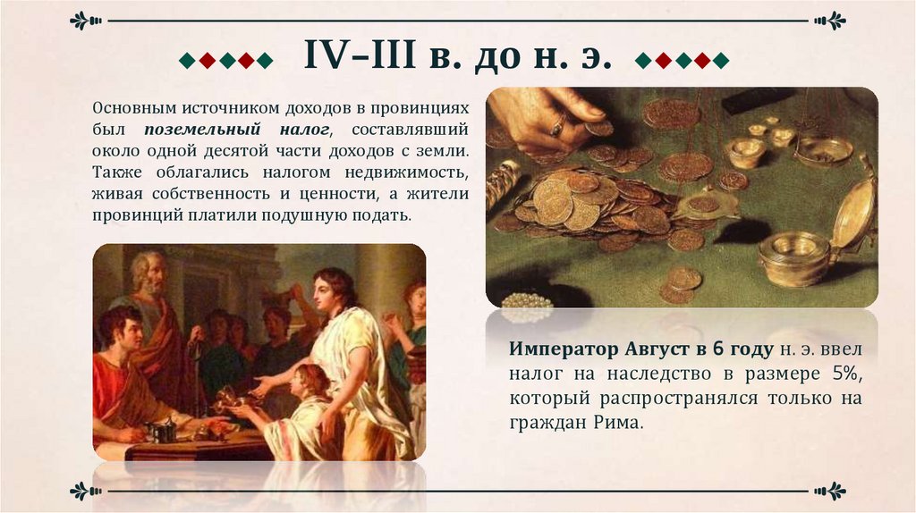 IV-III в. до н. э.Основным источником доходов в провинциях