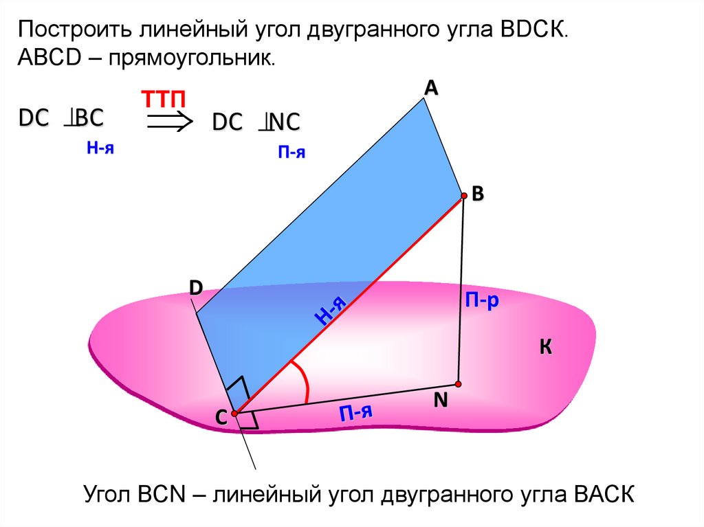 Построить линейный угол двугранного угла ВDСК.АВСD – прямоугольник.