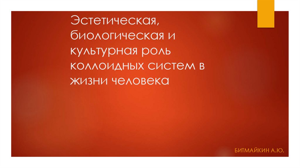 Эстетическая, биологическая и культурная роль коллоидных систем в жизни человека