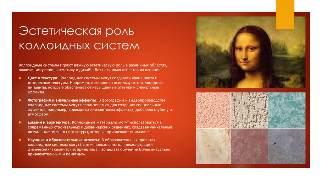 Коллоидные системы играют важную эстетическую роль в различных областях,
